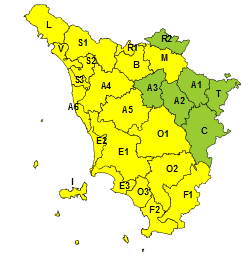 La Regione ha così esteso a domani l'allerta di codice giallo per temporali forti e rischio idrogeologico su buona parte della Toscana "Dalla sera di oggi, e nel corso della giornata di domani, lunedì, nuovo peggioramento con precipitazioni sparse, anche temporalesche, in estensione dalle zone costiere e dall'Arcipelago alle zone interne settentrionali, e successivamente anche sul resto della regione. Saranno possibili anche grandinate e forti colpi di vento. Nel corso della serata di domani tendenza al miglioramento con residue precipitazioni sulle zone interne centro meridionali".