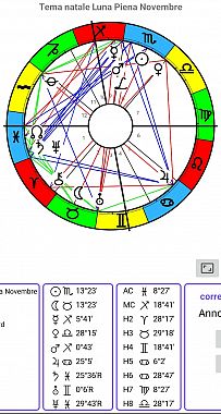 Luna Piena il 5 novembre in Toro, Luna Nuova il 20 novembre in Scorpione