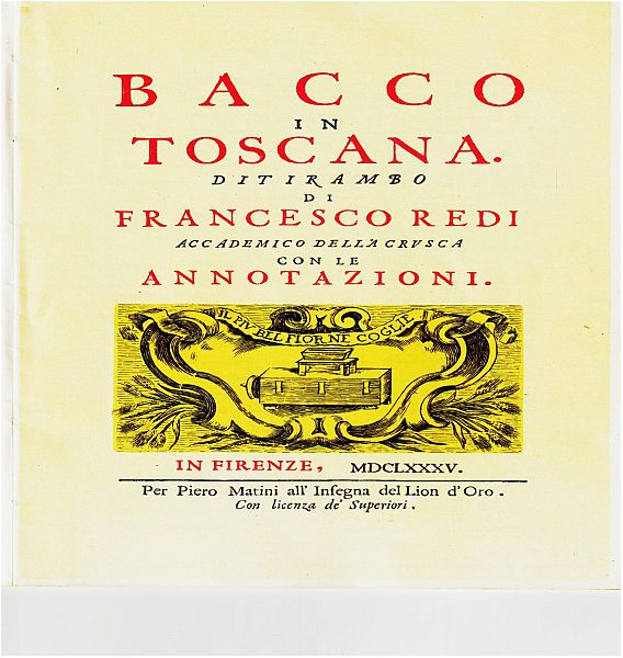 Gli Antinori si iscrissero alla organizzazione enoica nel 1385. Già producevano vini e lo stoccavano nel PALAZZO ANTINORI in Firenze( vediamo il “carro di vino” Di loro ne parlò Francesco Redi accademico della CRUSCA nel suo BACCO IN TOSCANA. Nel suo TIRAMBO del BACCO IN TOSCANA, possiamo trovarci anche poesie sul vino. Eccone una qui sotto. Sempre di Francesco Redi abbiamo una lettera scritta, 1656, all'amico Diacinto Cestoni di Livorno. Infine Donato Antinori, era il 1729, invia del vino LEATICO al cugino Niccolò.