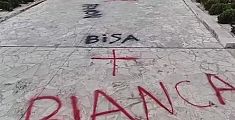 Vergate con vernice spray rossa scritte contro vaccini, tecnologie digitali e pressione fiscale. Forze dell'ordine sul posto anche con la Scientifica