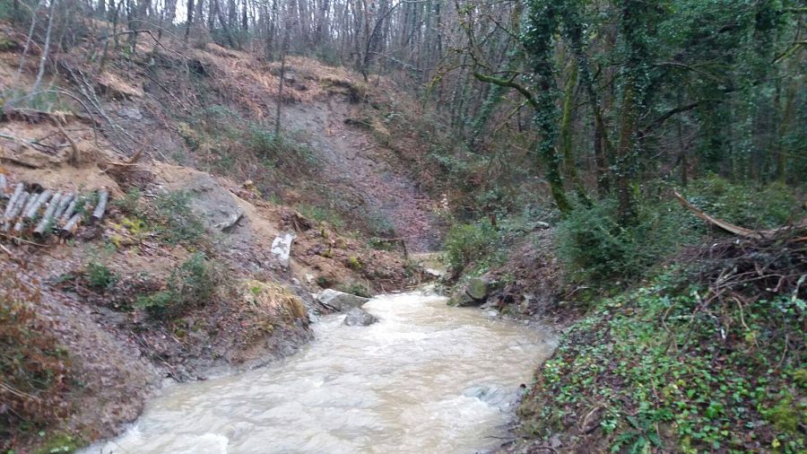 Terra e detriti sono caduti nel Rio Ribongi a Mutigliano. Distribuiti i ballini di sabbia a Santa Margherita. Passata la seconda piena del Serchio