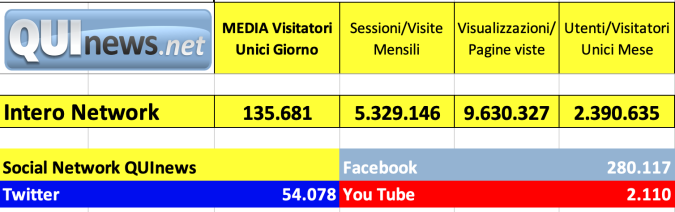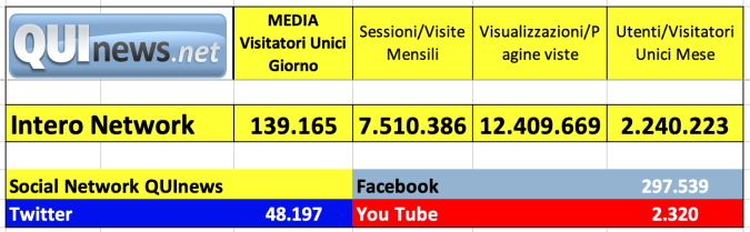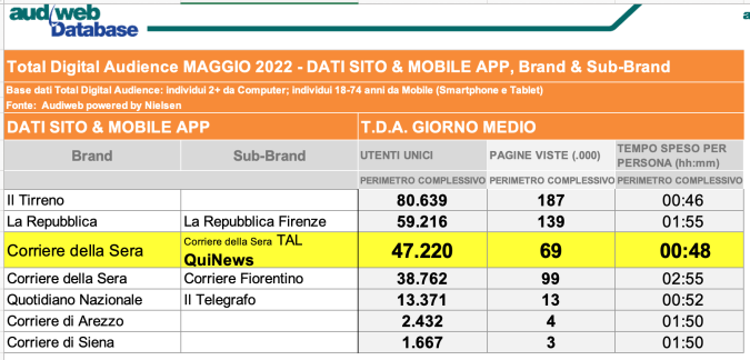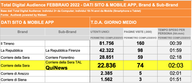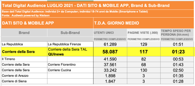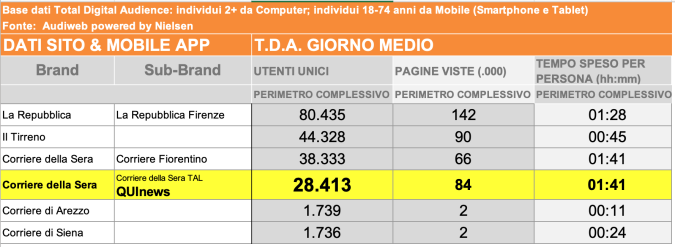 I DATI AUDIWEB DEL MESE DI NOVEMBRE 2020 NON SONO PRESENTI PER ADEGUAMENTO TECNICO DELLA RILEVAZIONE DEL NETWORK QUINEWS COME SUB BRAND DEL CORRIERE DELLA SERA